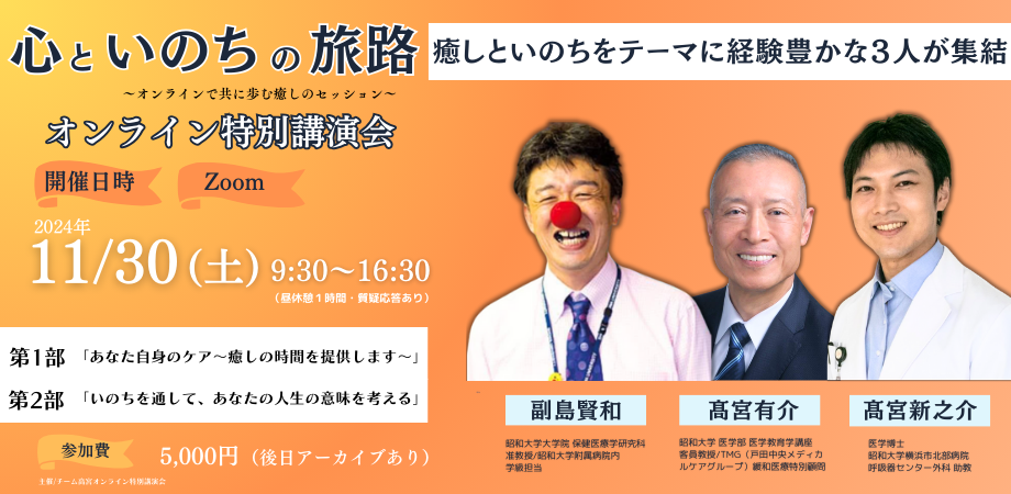 幸運なことに、Dr.高宮親子の知見や赤鼻で人気の副島賢和先生のお話の機会が今月11月にございます。世界中からオンラインで繋がれます。