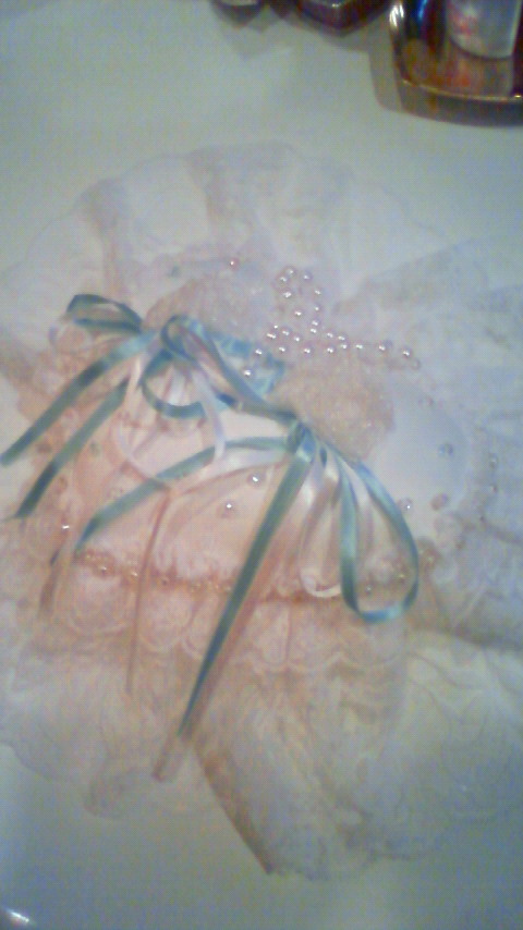 リングピローお友達が結婚するときに、リングピローをプレゼントさせてもらうことが多いです。 親友たち含め、お式に参列させてもらう友人ではほぼ作ってる気が。。 「わたしのときにも作ってね~♪」と言われて、喜んで作ることがほとんどです♪ わたしが作ったピローはこれで14個目?かしら。 15個だったかなぁ。 今のとこ、離婚率0!!(笑) 毎回ハート形ですが、使うレースや飾りを変えています。 今回はとにかくキラキラぶりぶりに可愛く仕上げてみました。 うーん。お式が楽しみです☆