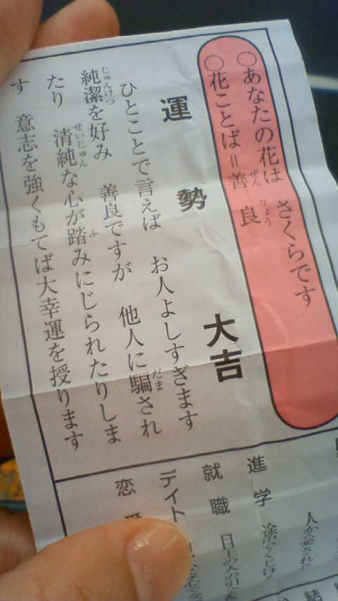 お願いごとは秘密ですが、こなごなに砕けた卵から出てきたおみくじは大吉でした。