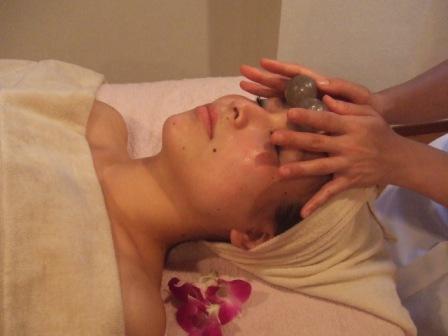 コスモフェイシャル・コスモリフト(コスモリフティング)の最後に、ソルトボールでマッサージをします。