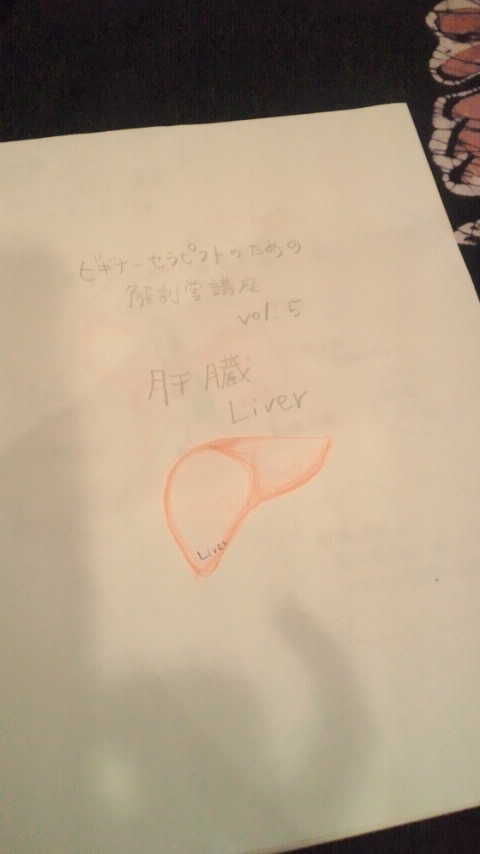 肝臓終了♪肝臓講座終了しました。 ヽ(´▽`)/ 出席者の方々、お疲れ様でした。先月の夏休みに引き続き、秋の三連休の今日も少人数で、サロンでゆったりセミナー。☆ふゆの手書きレジュメ、来月も出没するやもしれませんよー。(笑)