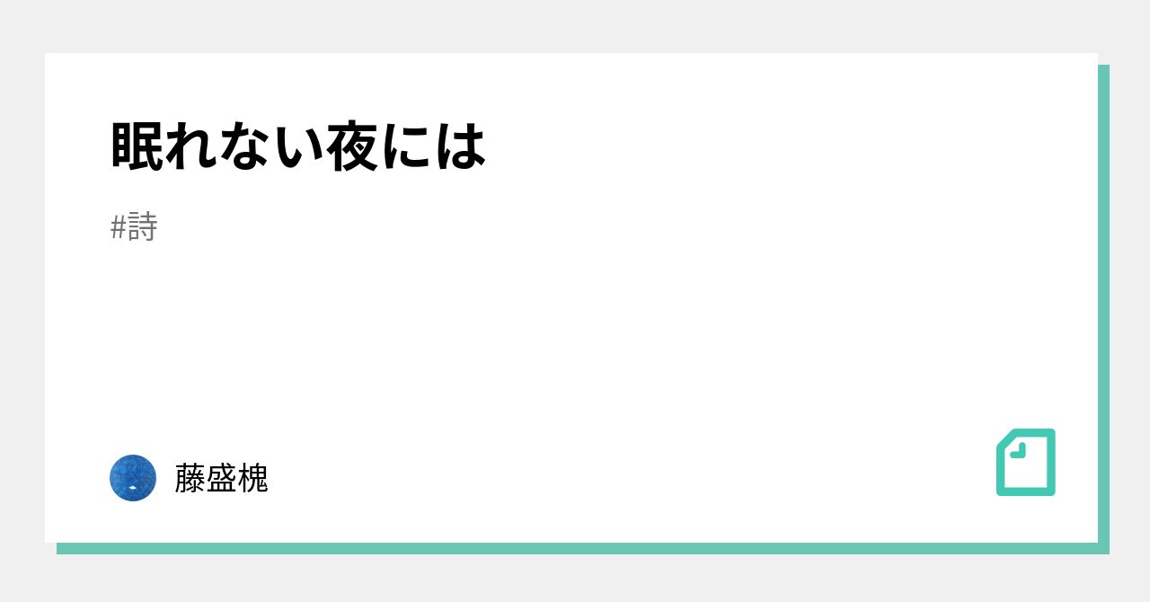 眠れない夜には 眠れない夜には 傘を抱いて 已まない雨の音を聞く。 窓ガラスを伝って 滴り落ちる音を聞く。 眠れない夜には|藤盛槐|note眠れない夜には 傘を抱いて 已まない雨の音を聞く。 窓ガラスを伝って 滴り落ちる音を聞く。note.com