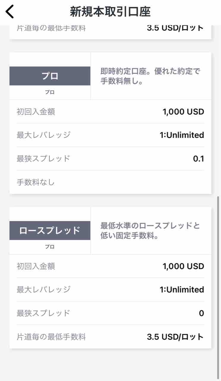 まず、MT4口座、3タイプある開設口座の中から、管理人は「プロ」口座が一番お得感があると思っているので、プロ・口座を開設します。