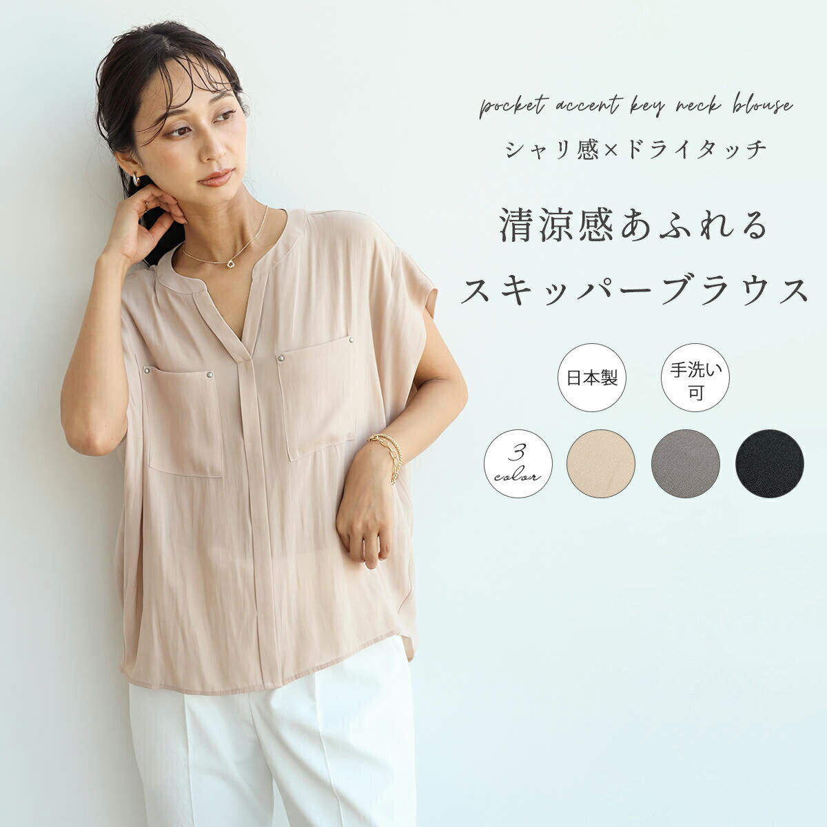 ポケットアクセントキーネックブラウス![]()