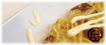 お好み焼きの仕上げに、マヨネーズを細く、シャシャーーーッ!とかける。