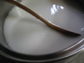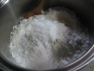 わらびもち粉と砂糖を混ぜて水を加えてよく溶かし