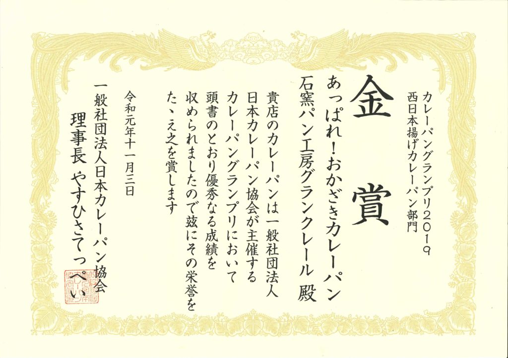 皆さまの応援によりこの度おかざきカレーパンが金賞を受賞することができました。