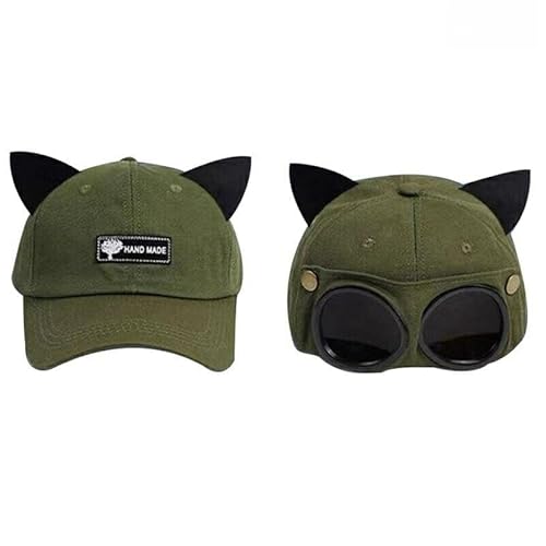 [DBH]帽子 男女兼用 キャップ 猫耳 3colors M L 2way 野球帽 飛行士 パイロット メガネ サングラス 遮光 おしゃれ かわいい ネコ耳付き レディース メンズ 個性 韓国 フリーサイズ,グリーンAmazon(アマゾン)