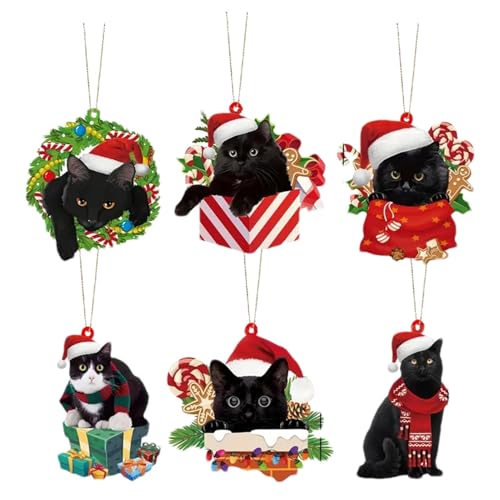 クリスマスツリー用猫オーナメント,クリスマス猫オーナメント | ビスタプリントアクリル製黒猫クリスマスツリーハンギングデコレーション - クリスマスツリーの飾り、木、壁、窓のクリスマス工芸品の装飾。Amazon(アマゾン)