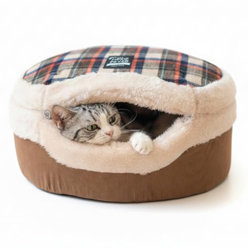 Konshun 猫ベッド 冬 ドーム型 2WAY キャットハウス 【どら焼き】 かまくら 丸型 隠れ家 暖かい 厚手 ふわふわ 寒さ対策 柔らかい 可愛い 滑り止め クッション付き 型崩れしにくい 洗える お手入れ簡単 (ブラウン / 直径約45cm×高さ約24cm)Amazon(アマゾン)