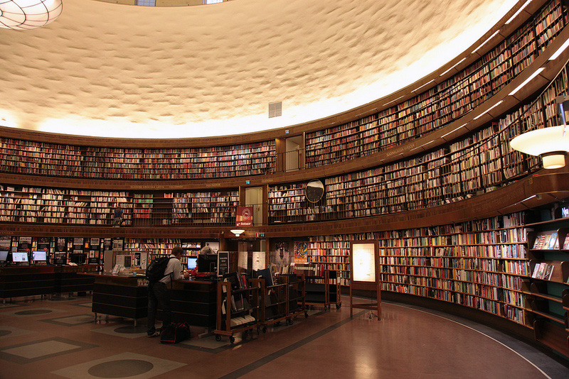 (写真引用:円形の書棚が美しい、ストックホルム市立図書館 | 北欧)