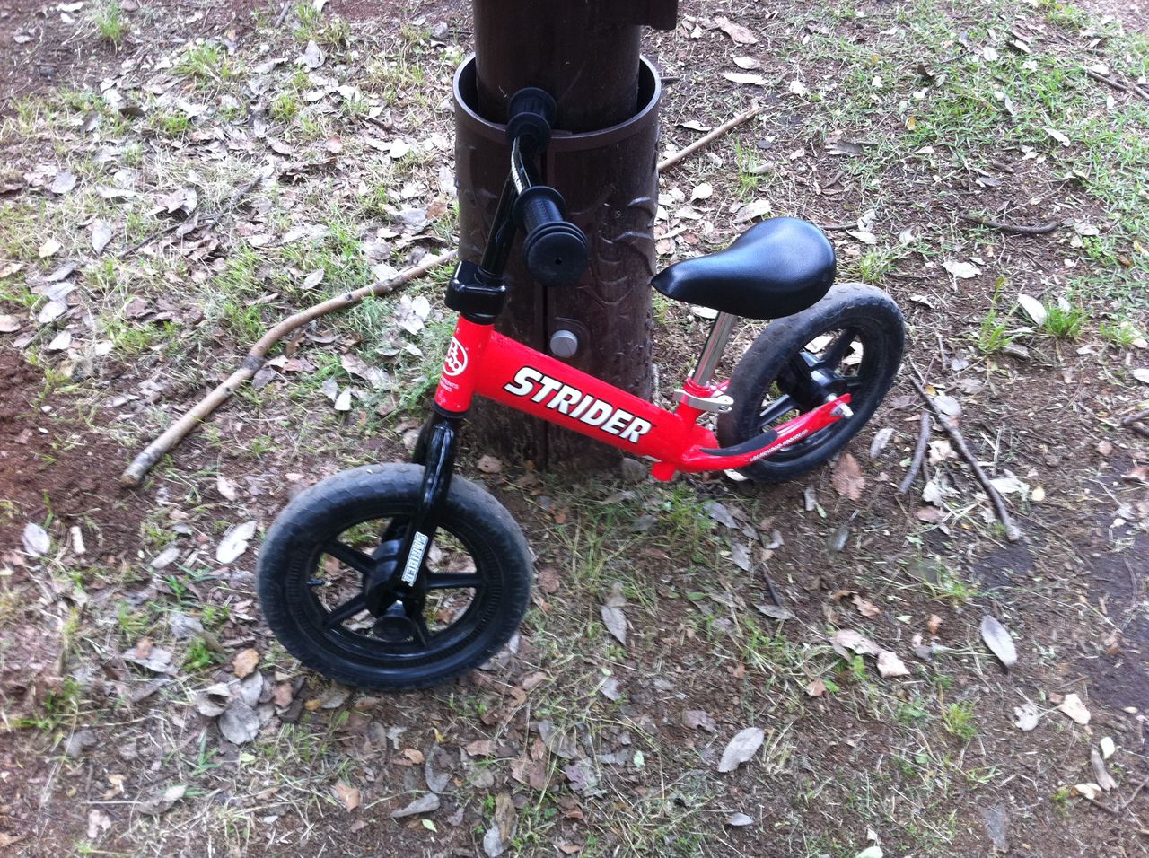 ペダル無しの二輪車で、足で地面を蹴りながら走るタイプです。