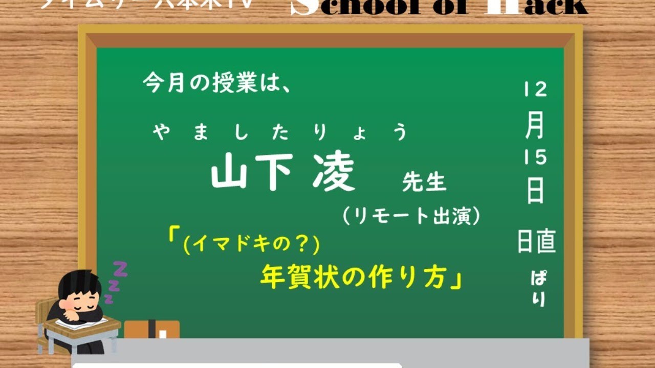 タイムリー六本木TV「スクールオブハック」タイムリー六本木TV毎月第3火曜日は「スクールオブハック」タイムリーオフィスのタレントの中から専門分野など知識を持ったメンバーを講師として招き、きっと役立つ?情報をお届けする番組です!今回の講師は、山下凌 先生(リモート出演) 「(イマドキの?)年賀状の作り方」についてです。 ※生徒代表&インフォメーション担当...youtu.be