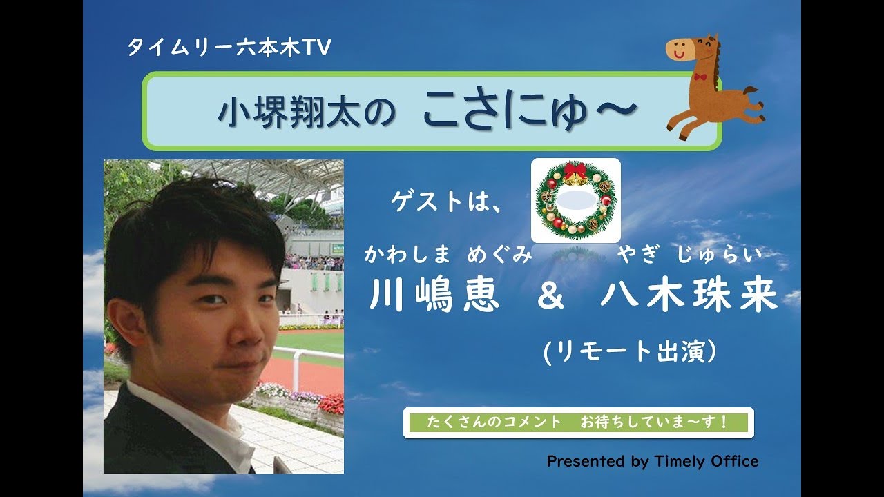 タイムリー六本木TV 小堺翔太 の「こさにゅ~」タイムリー六本木TV 、小堺翔太 の「こさにゅ~」★12/22 (火) 20時〜、YouTubeLiveにて生配信!MC:小堺翔太ゲスト:川嶋恵、八木珠来(リモート出演)※インフォメーション担当:相月ともみhttps://youtu.be/Nxy8kz00ZVQタイムリー六本木TV 小堺翔太の「こさにゅ~」タイムリー六本木TV毎月第4火曜日は、小堺翔太の「こさにゅ~」今月のNEWSを個人的にピックアップしお届けする番組です!ゲストコメンテーターは、川嶋恵&八木珠来(リモート出演)どうぞお楽しみに~!!D,酒田youtu.be是非たくさんのコメントお待ちしてます!