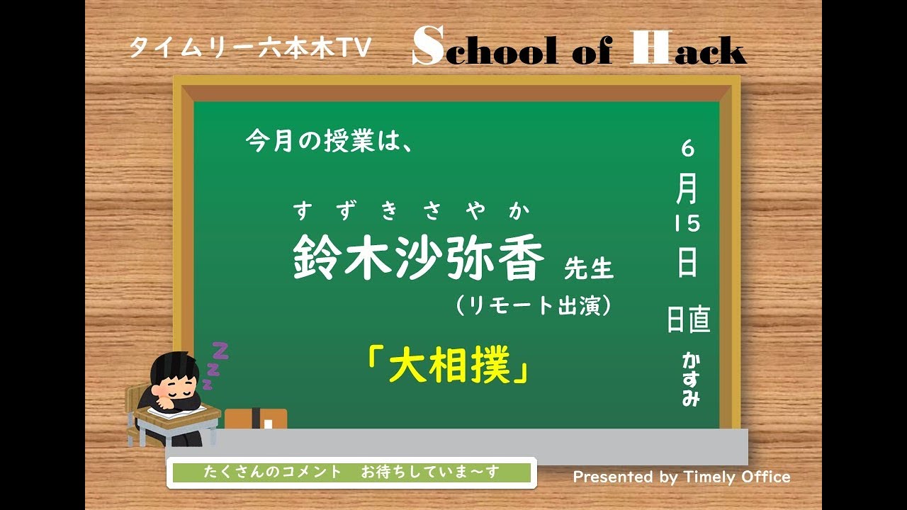 タイムリー六本木TV「スクールオブハック」タイムリー六本木TV毎月第3火曜日は「スクールオブハック」タイムリーオフィスのタレントの中から専門分野など知識を持ったメンバーを講師として招き、きっと役立つ?情報をお届けする番組です!今回の講師は、鈴木沙弥香 先生(リモート出演) 「大相撲」についてレクチャーしてくれます。 ※生徒代表;栗林かすみどうぞお楽しみ...youtu.be