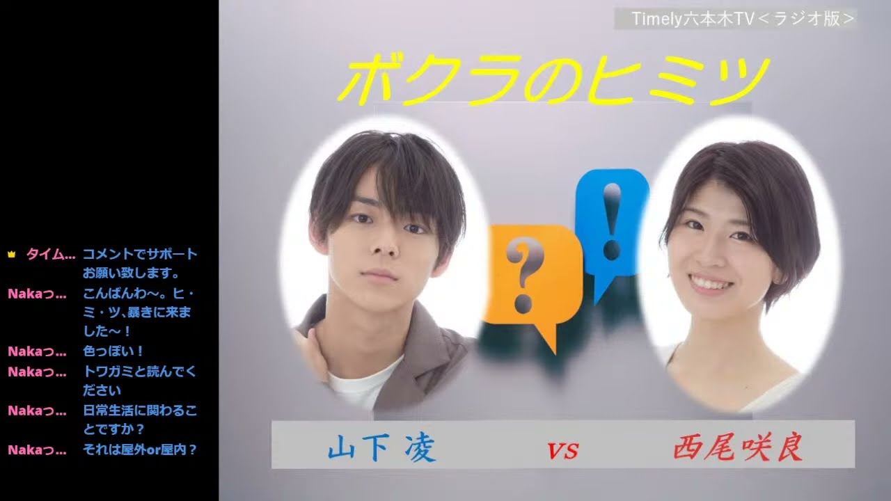 タイムリー六本木TV(ラジオ版) 「ボクラのヒミツ」(振替配信)タイムリー六本木TV(ラジオ版)「ボクラのヒミツ」(振替配信)★6/30(木)20時~、YouTubeLiveにて生配信!出演:山下凌 、西尾咲良※コーナー担当:松下萌子https://youtu.be/d2yDYkIgCv0<ラジオ版>『ボクラのヒミツ』#15タイムリー六本木TV<ラジオ版>毎週木曜日の20時~生配信あくまで<ラジオ版>として音声にてお楽しみ下さい!第4木曜日は、「ボクラのヒミツ」今回の出演メンバーは、山下凌、西尾咲良 ※コーナー担当;松下萌子それぞれが抱えた「秘密」を当て合うゲーム形式のトーク・バラエティー番組です!アナタは、ヒミツを暴けますか?!是...youtu.be秘密を当て合うトークゲーム・バラエティー番組アナタはヒミツを暴けるかな?!是非コメントでのサポートお願いします!