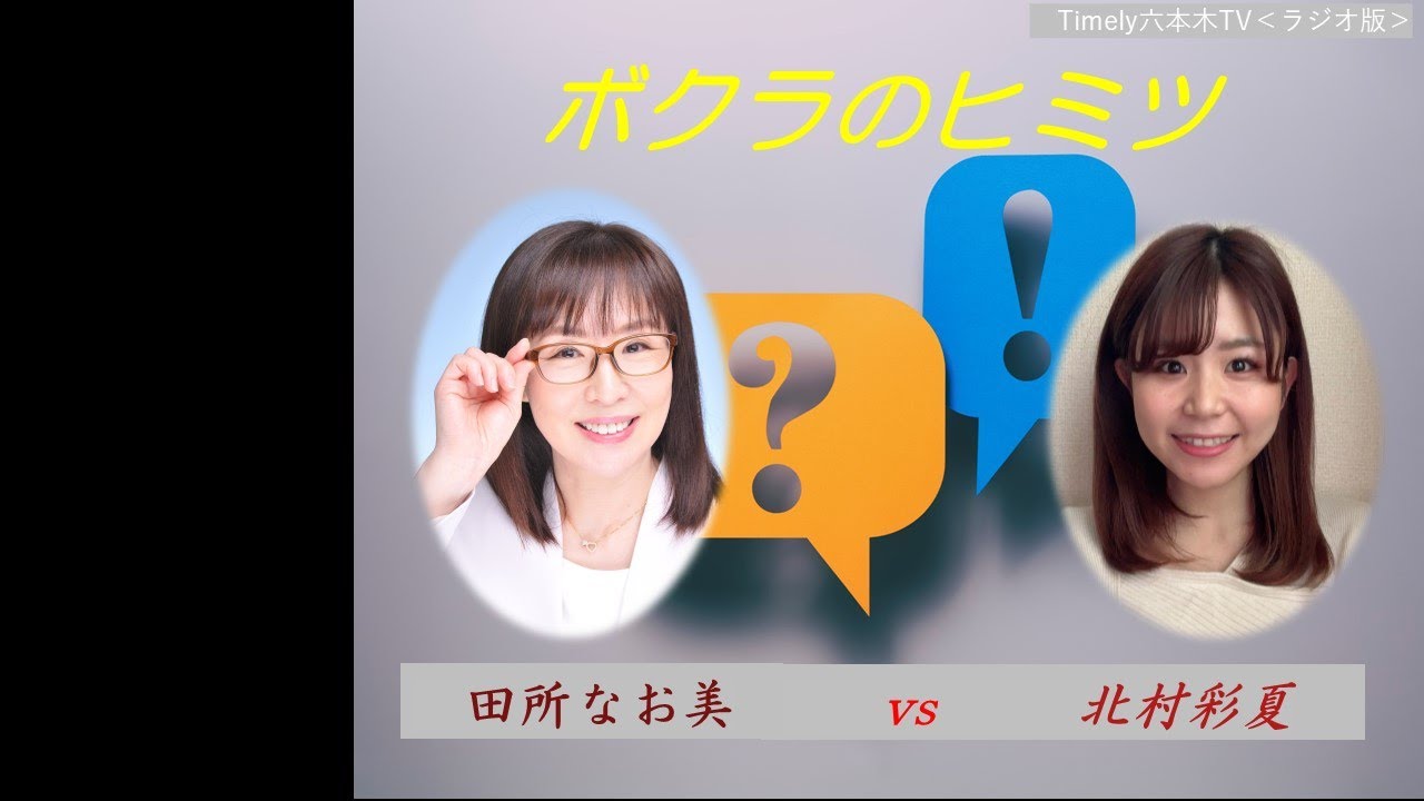 <ラジオ版>『ボクラのヒミツ』#16タイムリー六本木TV<ラジオ版>毎週木曜日の20時~生配信あくまで<ラジオ版>として音声にてお楽しみ下さい!第4木曜日は、「ボクラのヒミツ」今回の出演メンバーは、田所なお美、北村彩香 ※コーナー担当;宮崎桃花それぞれが抱えた「秘密」を当て合うゲーム形式のトーク・バラエティー番組です!アナタは、ヒミツを暴けますか?...youtu.be