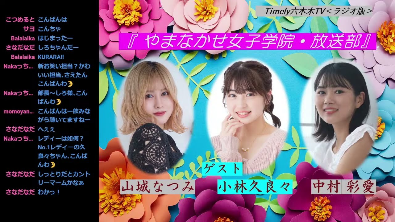 <ラジオ版>「やまなかせ女子学院・放送部」#27タイムリー六本木TV<ラジオ版>毎週木曜日の20時~ ※生配信。あくまで<ラジオ版>として音声にてお楽しみ下さい!第1木曜日は「やまなかせ女子学院・放送部」 出演;山城なつみ、中村彩愛 ※お休み/瀬川美紅 コーナー&ゲスト;小林久良々(新人) 是非、聞いて下さいね~!D.(顧問?)酒田youtube.com