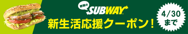 こちらのクーポンでもサブウェイのサンドイッチをお試しください♪