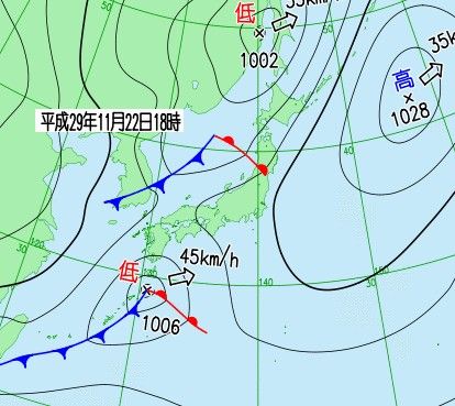 天気図と雲見て、