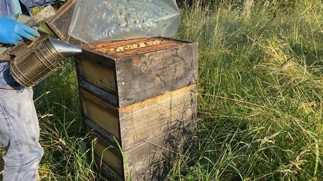 蜂と 戯れる、カールおじさんっ? 笑っ。