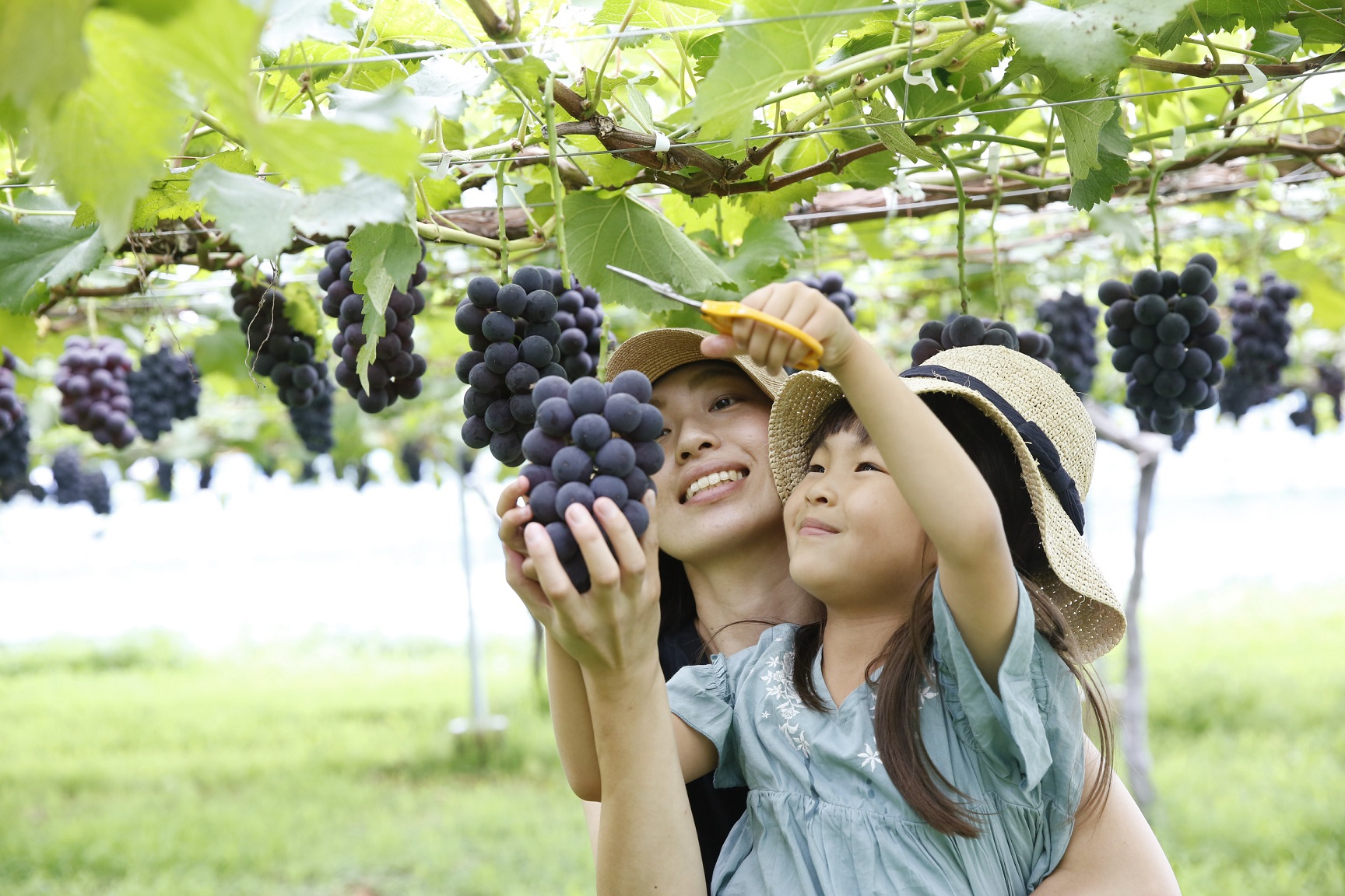 ぶどう通りにはぶとうの直販所やぶどう狩りの農園がたくさん。