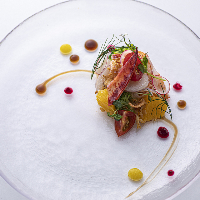 オマール海老のトマトソース煮。揚げ物にも海老が入っています🦐