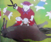 お腹をハサミに切り裂かれて子ヒツジの代わりに石を入れられちゃう写真。
