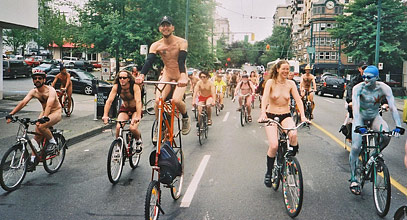 車文化、油の依存に対する警鐘として世界中の都市では、人々が裸で自転車に乗るようです。