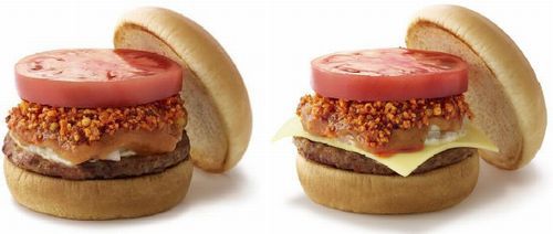 「ざくざくラー油バーガー」は、「スッキリ!!」コメンテーターのテリー伊藤プロデュースメニュー第2弾。2種類の唐辛子の辛みと風味を引き出したゴマ油に、大きさの違う2種類のフライドガーリックとフライドオニオン、小粒のあられを加えたざくざく食感の“食べるラー油”と、メキシカンな冷たいトマトサルサのダブルソースが大きな特徴だ。