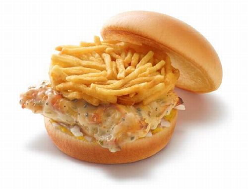 「塩バターチキンバーガー」は日本はもちろんのこと、特にアジアで人気の高いチキン(鶏もも一枚肉)を直火焼きし、これにカリッと揚げた同商品専用のポテトフライ、オニオンスライス、マスタードを合わせた一品。チキンの下味は和風だしベースの塩味で、余分な脂を落とし、皮を香ばしく、肉をジューシーな食感に仕上げられる直火焼きにこだわった。ソースは日本とアジアでは異なるモノを使用。日本向けには、すりおろした梨のピューレにバターを加え、青柚子や揚げ胡椒で香りや辛さのアクセントを付けた塩バターソースを採用している。