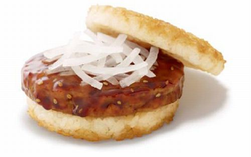 「モスライスバーガー鶏つくね」は、初代ライスバーガーの具材であるつくねを使用し、このメニュー名では2007年に販売していた人気メニュー。メイン具材の鶏つくねは国産の鶏もも肉とむね肉を粗めにひき、長ネギ、レンコン、しょうが、にんにくを加えたもので、店舗で直火焼きにしている。これに和風ソースを合わせ、オニオンスライスとともにライスプレートで挟んだ一品だ。