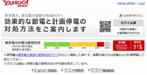 東京電力が「電力使用状況グラフ」を公開、ヤフーもメーターを掲載。
