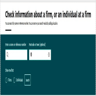 まず最もよく使う機能の一つが、「Firms」セクション内の「Check if a firm is authorised」(ブローカーが認可を受けているか確認)です。これは、ブローカーの認可情報を確認するための機能です。