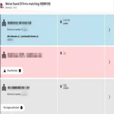 3つ目は「No longer authorised」(もう認可されていない):認可が取り消された企業を意味します。一般的に、このカテゴリに属する業者の多くはEEAライセンス(欧州経済領域のライセンス)を持つものであり、一部はFCAによってライセンスが取り消されたケースもあります。