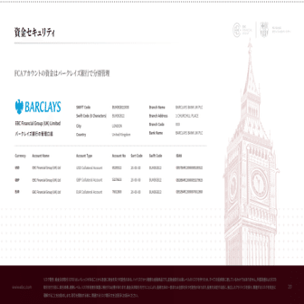 例えば、EBCの分別管理口座が、英国の名高いバークレイズ銀行であり、さらにバークレイズ銀行の最上級の法人口座を利用しています。これにより、AAAレベルの資金安全保護を享受しています。
