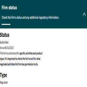 例えば、EBCの規制番号「927552」を入力し、その後、「Firm Status」を確認し、StatusとTypeが「Authorised」と「Regulated」であることを確認します。この点で、EBCがFCAの完全なる規制を受けるブローカーであることが確認できます。