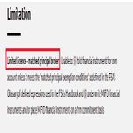 クリックすると、「Limitation」欄で「matched principal broker」と表示されていれば、このブローカーは本当にSTPライセンスを持っていることがわかります。