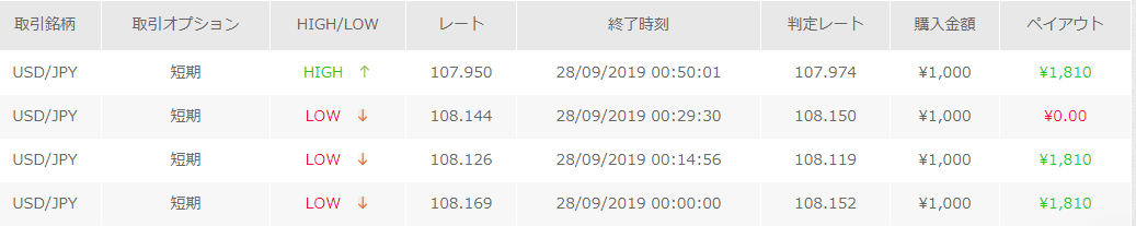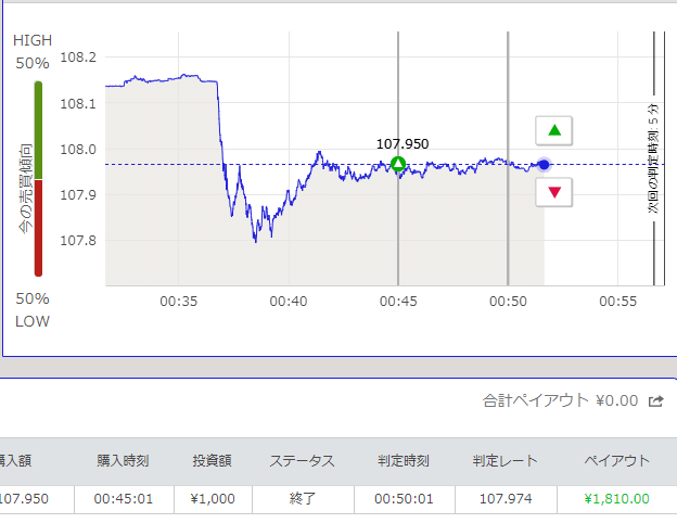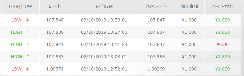 本日のトレードは3勝1敗 5分バイナリーは3連勝 1敗は60秒バイナリー 5分に特化していこうか