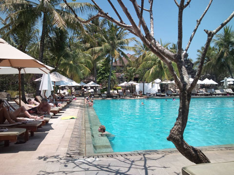 ミーゴレン(焼きそば)をビンタンで流し込んでまたプールへ。