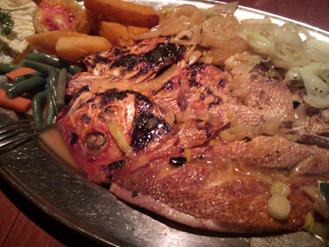 店内に入って、エビとスナッパー(鯛の仲間)のグリルを注文。