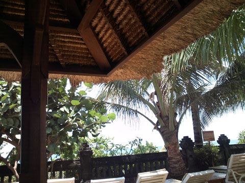 夕方まで、ホテル内の海が見えるガゼボに横たわりまったりする。