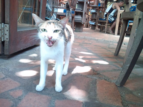 レストラン内を猫がうろちょろしていたので写真撮ろうとしたら威嚇してきた。