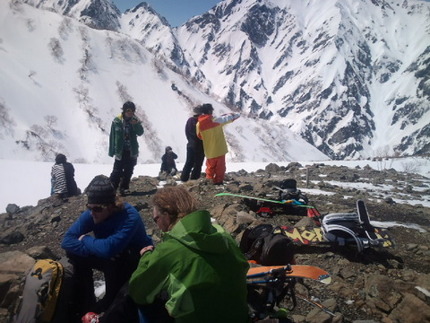 後は斜度のゆるいところをトラバースして、板に履き替えゲレンデに滑り降りるだけだ。
