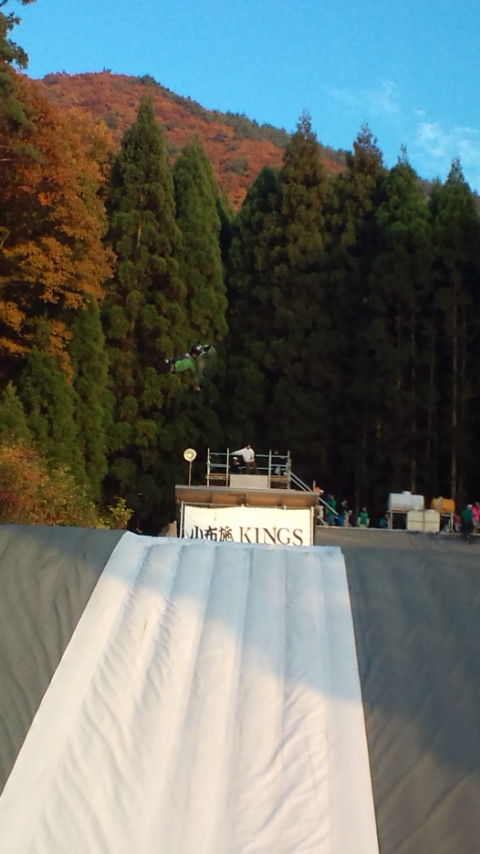 講習終わってミドルサイズのキッカーで恐る恐るスピン。