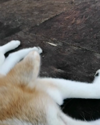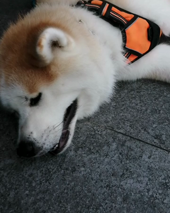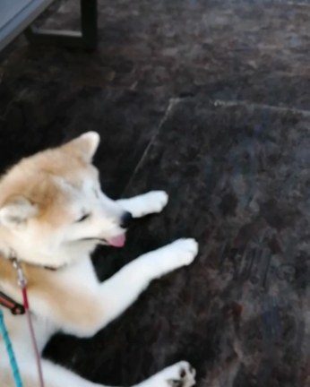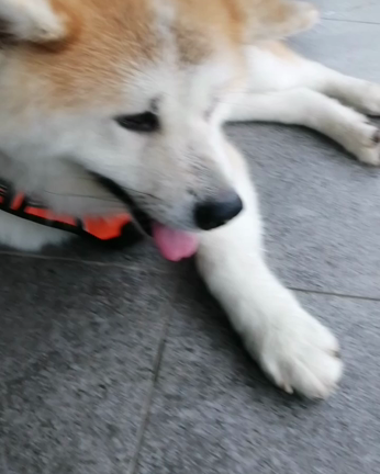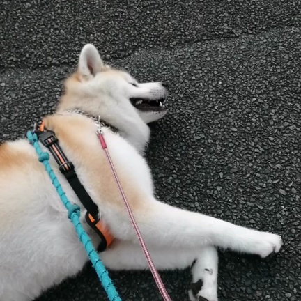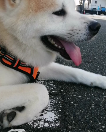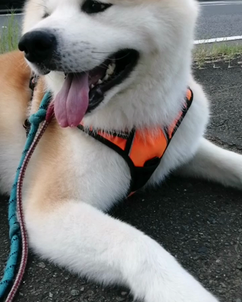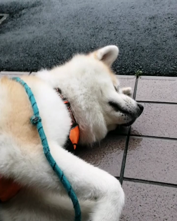 暑くなりそうな朝‼️今にも死にそうに倒れ込んで抵抗する未来丸、イヤイヤ満開。それでも本日の朝散