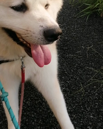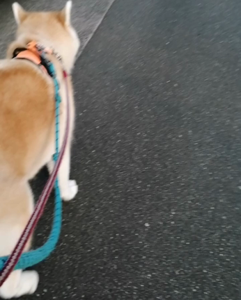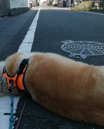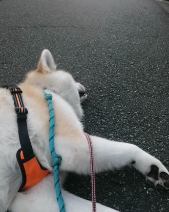 二日連続ラスト1km猛ダッシュ‼️日陰は爽やかな朝、未来丸はさっそくイヤイヤアピール。飼い主ガン