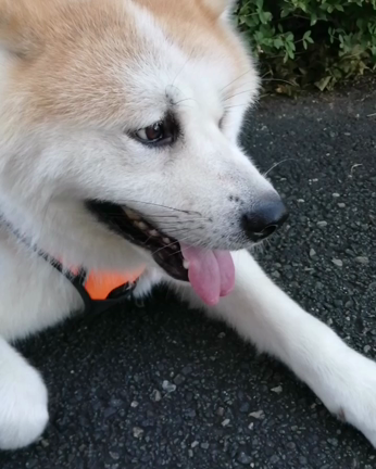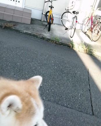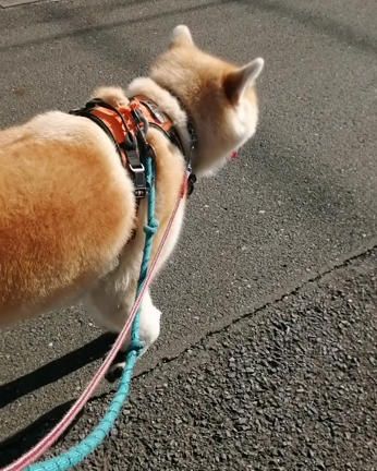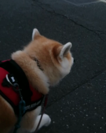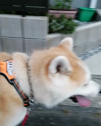 「いっしょに歩こう❗」そう呼び掛けながら未来丸と歩きます。未来丸は私の左横を?ゆっくり歩きま