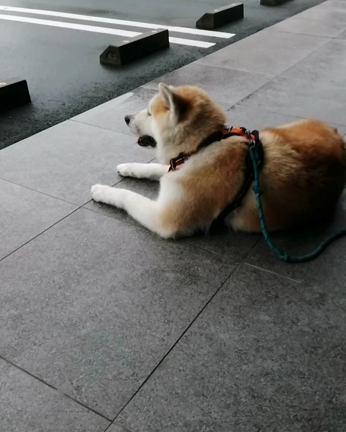 散歩に出ようとしたら突然の☔未来丸はもともとヤル気無し。飼い主ワクチン接種で自重気味。結局◯