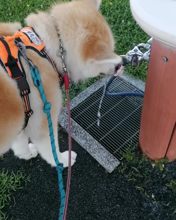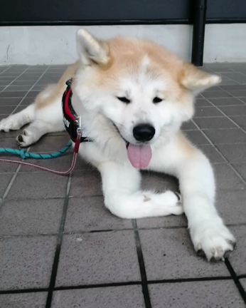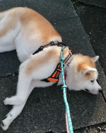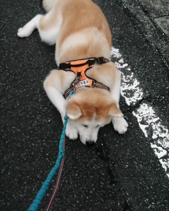 朝方は☔、散歩途中から雨があがり元気にお散歩とはいきませんでした。地面が濡れていてもお構い無しの